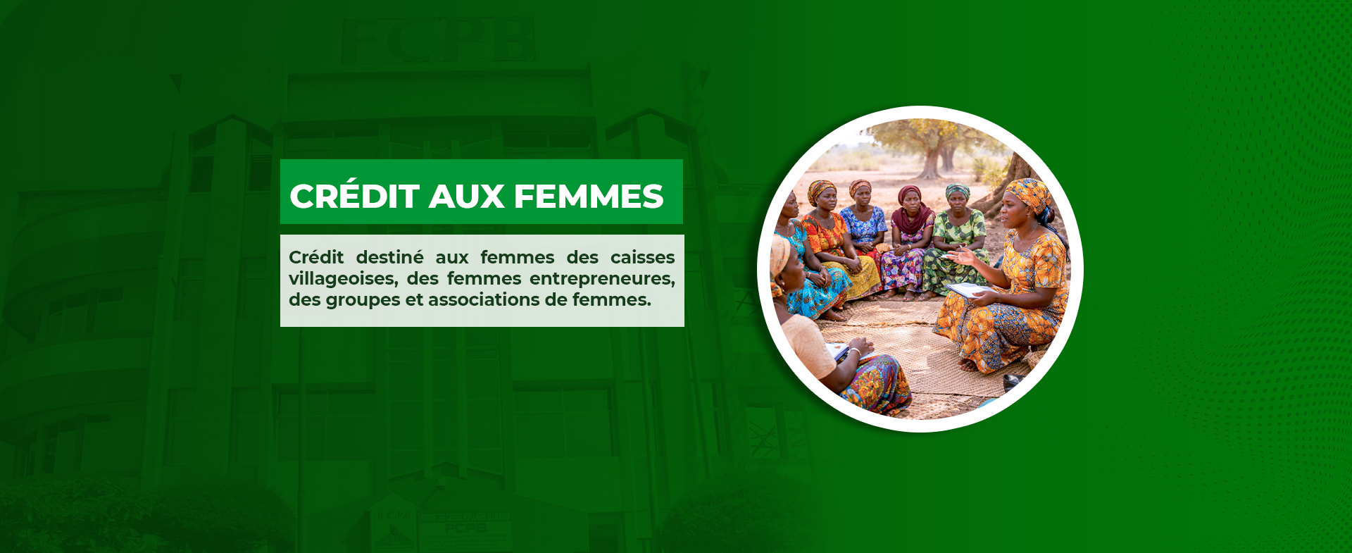 - le Crédit aux Femmes Commerçantes (CFC) : il permet de satisfaire les besoins de crédit des femmes commerçantes du milieu urbain et péri-urbain exerçant des activités génératrices de revenus.